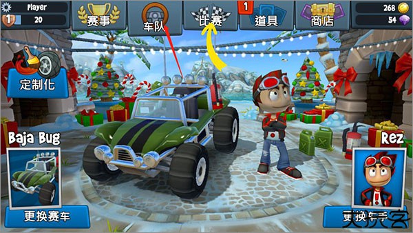 沙滩车竞速2老版本延续了系列最初的纯粹玩法,没有花哨的功能堆叠,也没有频繁的活动干扰,保留了最经典的竞速氛围。游戏内包含最早的八条赛道与十二辆基础车型,再加上传统的道具系统,让玩家能够专注于速度与技巧的较量。沙滩车竞速2老版本(Beach Buggy Racing2)下载后,操作体验干净利落,物理反馈也极为真实,既能带来紧张刺激的冲刺快感,又能让老玩家重温当年最原汁原味的赛车激情。
