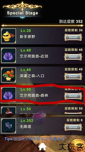 2、接着再选择楼层,你是萌新的话,推荐你刷50层,后期等实力跟上了再继续攻。
