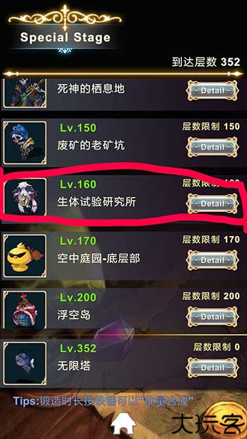 3、只要你伤害足够就去160层,这里会掉落高级金属。