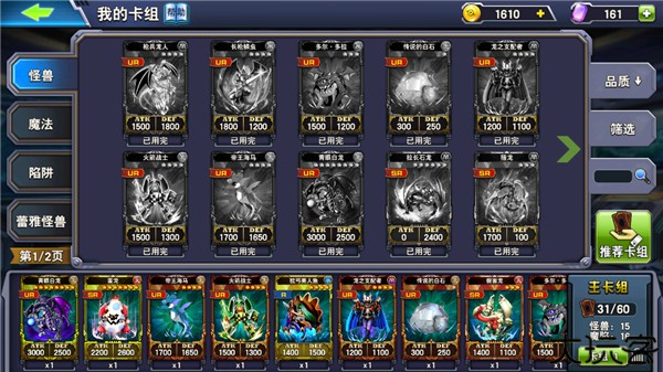 2、上下滑动灵活调整主力怪兽阵容,强化进攻策略。