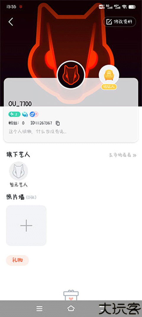 4、进入编辑页面后,点击右上角修改资料,让其他用户对自己是男是女分不清。