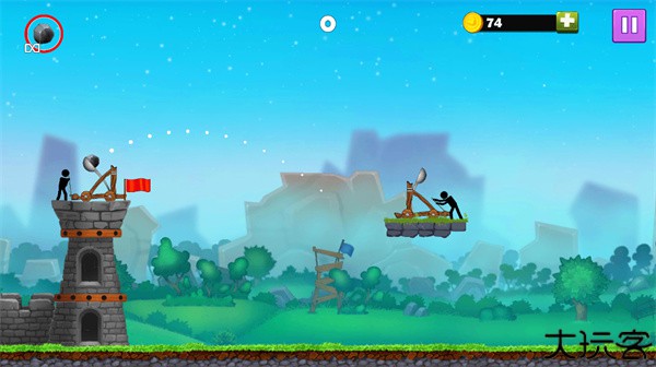 1. 玩家需要通过触摸屏幕,操控火柴人利用投石车投掷石头攻击敌人。