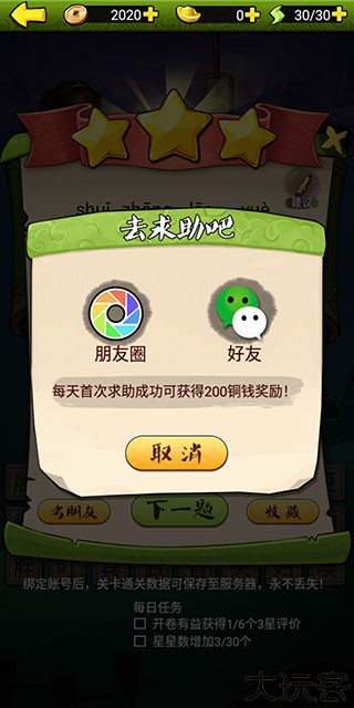 6、然后,玩家还可以将题目分享给朋友对其进行考验或者寻求朋友的帮助。