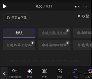 2、然后点击右上方的自定义字体,然后就会告诉我将字体文件复制到/SDcard/videoeditorPro/fonts/就可以完成自定义字体的导入了。