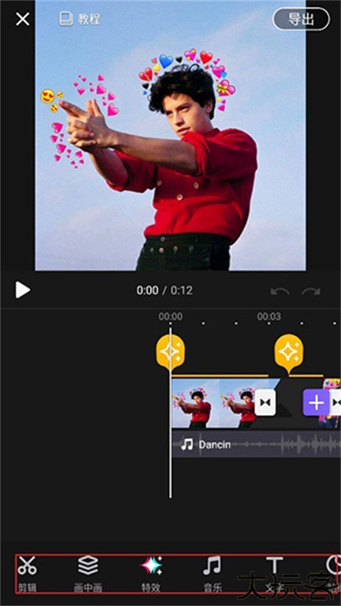 2、允许关键帧动画,添加蒙版、视频拼贴、文字和贴纸。