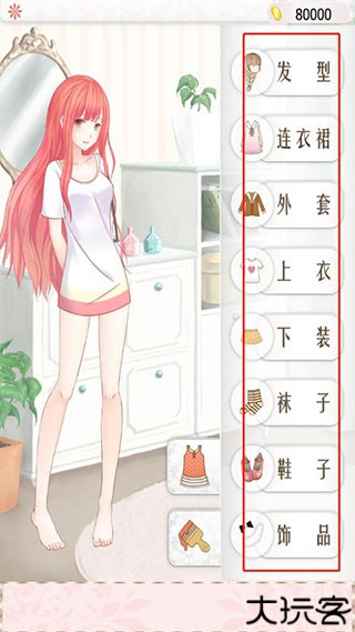2、玩家可以更换暖暖的发型、连衣裙、外套、上衣、下装、袜子、鞋子等等,进行时尚大改造。