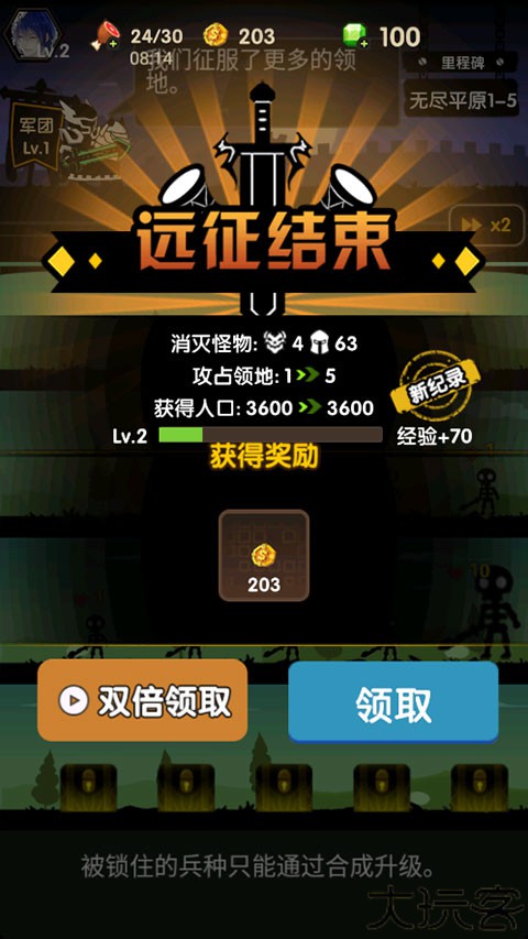 7、当远征结束后,玩家会获得相应的金币奖励以及领地和人口扩张。