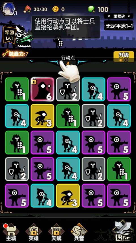 4、玩家只要点击行动点,可以将士兵直接招募到军团。