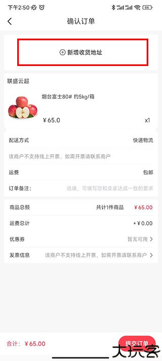 4、结算页面首先填好收货地址在去提交订单。