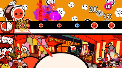 红色大鼓符号需双手同时点击正中央,分数更高。