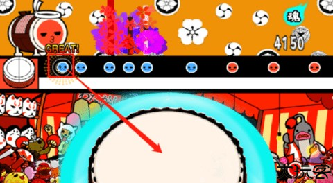 蓝色节拍音符出现时,应敲击鼓的边缘以完成对应操作。