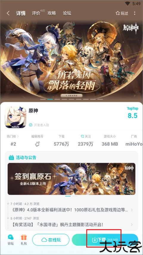 2、进入游戏游戏详情页面后,能够进行查看,点击右下角就可以进行下载了。