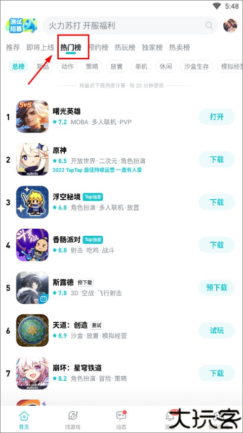1、进入软件后,能够点击随意板块,如热门榜,找到喜欢的游戏。