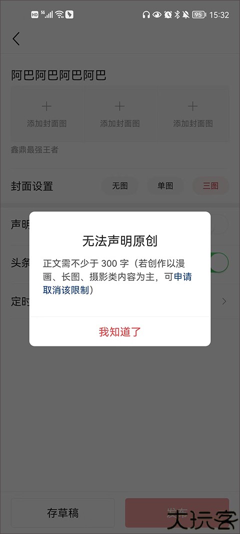 3、在排版区直接添加封面图,同时可勾选声明原创。