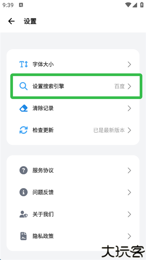 3、在设置列表中点击“搜索引擎”选项以开启调整入口。