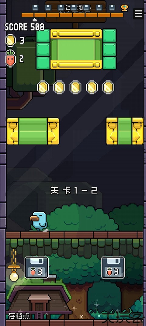 3、每个关卡都会有个停留休息的地方,让你喘口气再接着跳。