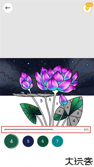 3、数字与插画中间还有一个进度条,玩家可以根据进度条来进行填色。
