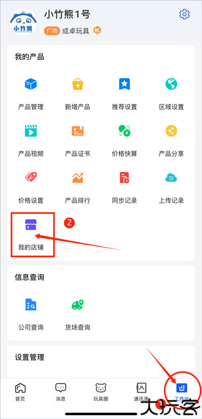 1、去工作台-我的店铺可一键把整厂产品同步给对应客户。