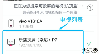 支持电视果、DLNA设备及装有投屏助手的电视。