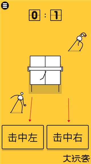 2、玩家开始游戏后,需观看对手的击球轨迹进行预判,球往左边就点击“击中左”,往右边就点击“击中右”。
