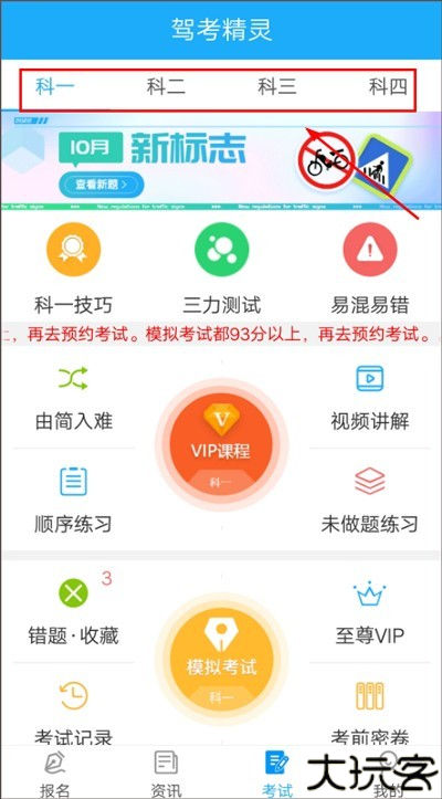 2、这里有科目一到科目四,在考试前,做好完全的准备。