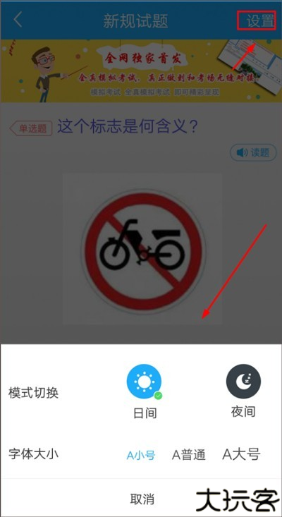 3、可以点击设置,进行字体、日间还是夜间的模式切换。