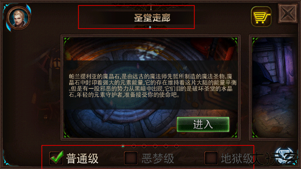 三种难度可选,进入“圣堂走廊”开启挑战。