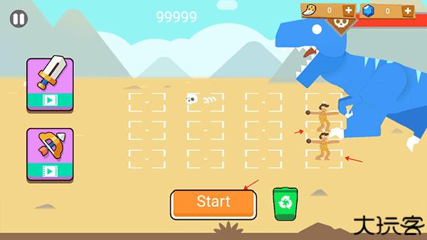 2、然后玩家可以看到眼前的空格可以放置两个人,然后点击Start。