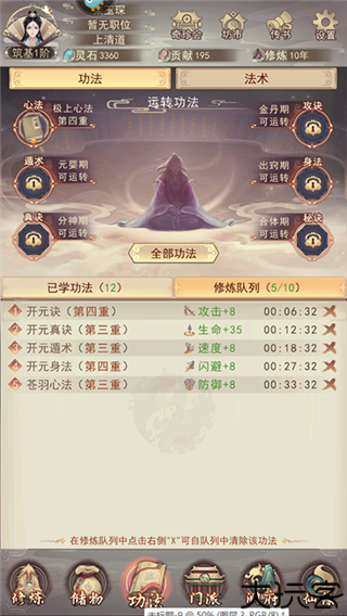 3、门派内学习心法,银币充足便可持续修炼进阶。