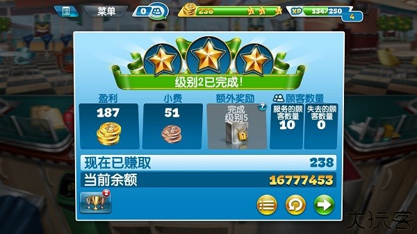 靠营业获得金币奖励,可用于设备与食材的升级。