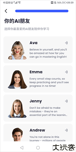 按喜好自选AI外教类型,获得个性化引导。、