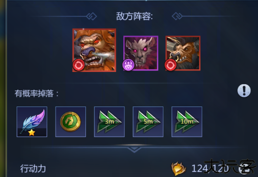 6、第五关boss也是第二关卡的boss是牛头人首领,具体技能是毁灭打击。对所有敌人造成145%的伤害,也是使使所有敌人获得减18%的攻击。不过小兵换成了更高级的秃鹫