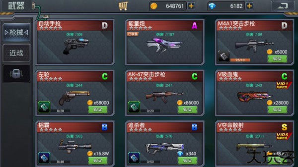 4、游戏中装备分为械和近战两大类,其还分为D、C、B、A、S多种不同的稀有度,且强度也会随稀有度而逐级上升。