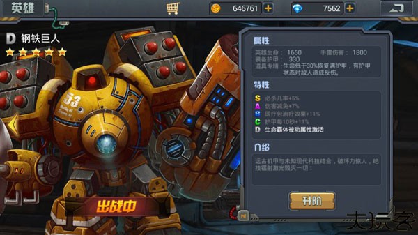 3、英雄能通过升星、升阶以大幅度提高英雄的战斗属性,从而带动战斗力的提升。