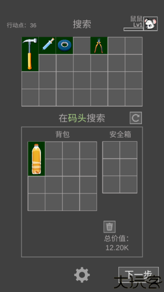 6、搜索到的物品可以选择拾取到背包中,后续遇到更好的物品可以扔掉背包中的物品进行更换