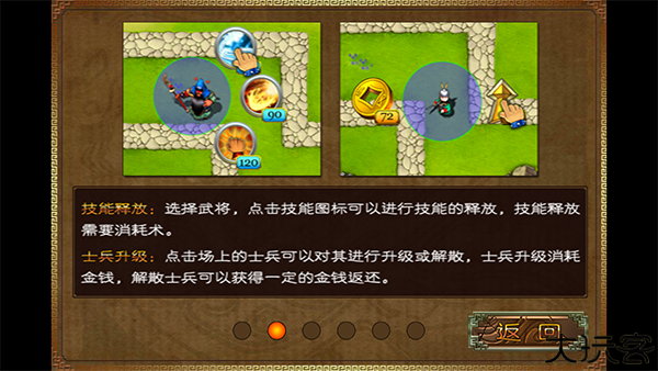 士兵升级:点击场上的士兵可以对其进行升级或解散,士兵升级消耗金钱,解散士兵可以获得一定的金钱返还。