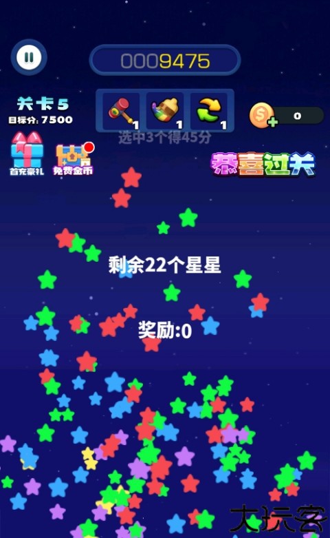 5、游戏结束后,如果玩家剩余的星星方块数量过多(通常超过10个),则不会获得过关奖励分数。