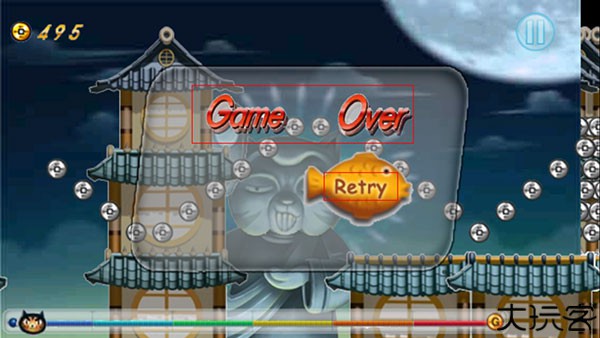 3、点击屏幕一下时,让忍者猫成功跳起。