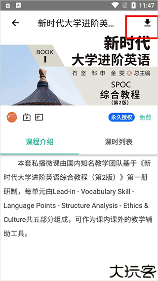 5、如果对课程感到满意的话,还能点击右上角还可以进行下载。
