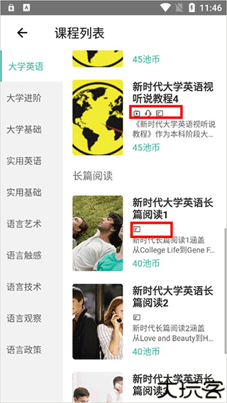 2、但用户需要注意,有些课程资源是不支持观看的,只适合阅读,需要注意课程名称下方的图案。
