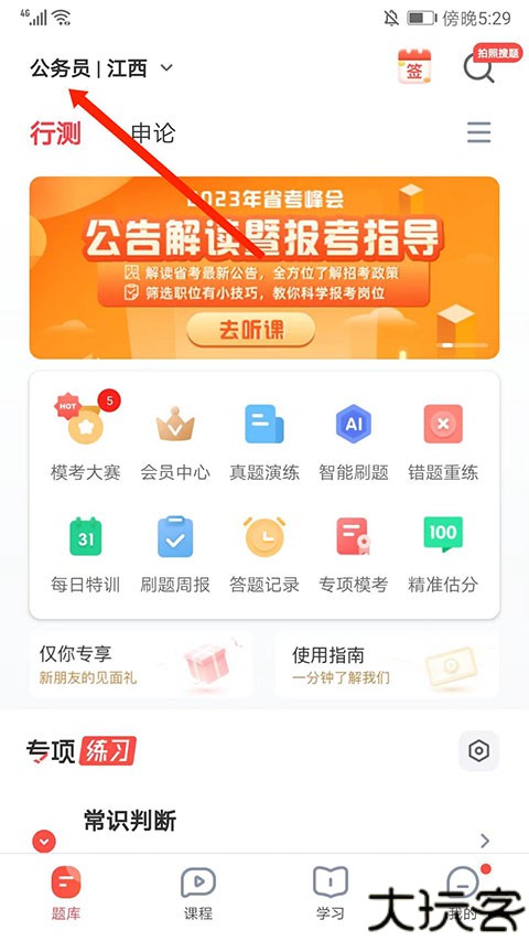 打开华图在线,点击首页“真题演练”功能选项进入页面。