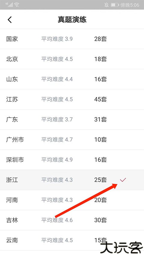 以“浙江”为例,选择所需试题,支持区域及类别过滤。