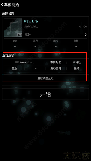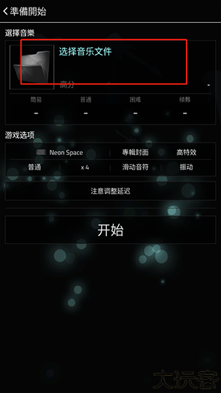 挑选音乐后可自定义速度、难度、下落频率等玩法设置。
