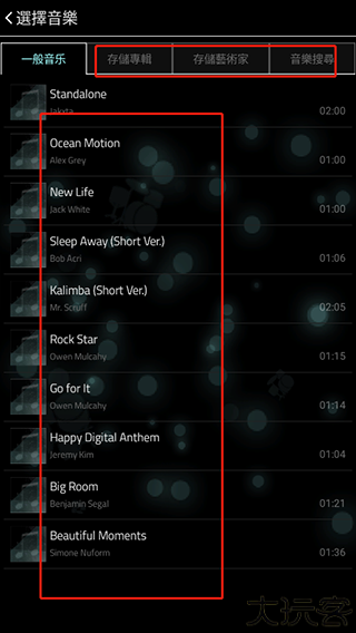 点击“选择音乐文件”,可浏览并载入设备中的音频资源。