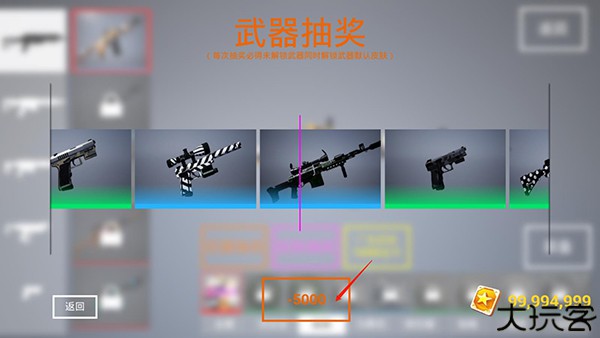 3、当玩家点击武器抽奖后,花费5000金币来获得一次抽奖体验。