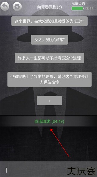 2、以对话形式进行,可以点击加速,让剧情过度的快一些。