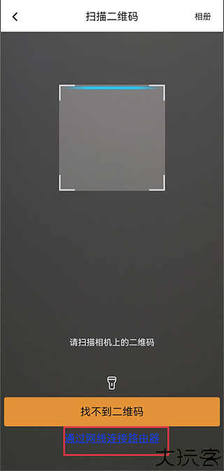 3、将手机对准摄像机上的二维码以进行扫描添加,若用户扫描不了也可以点击下方的“通过网线连接路由器”来添加。