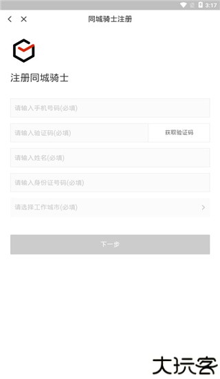 1、进入顺丰同城骑士app以后就能够在线快速的进行注册。