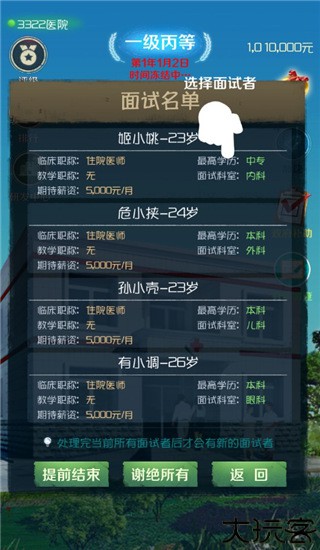 1、医生是核心,玩家要招聘并培养更多优秀医生壮大医院实力。