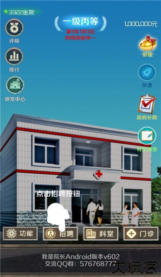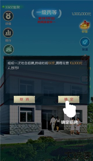 5、每年的12月20号只要达成一定的条件即可进行医院评级,从一级丙开始,到乙、甲不断的提升,只要满足相应的条件就会在这一天进行医院等级提升。